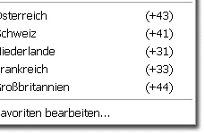 Die Landesvorwahl  können Sie einfach ergänzen, indem Sie die Wahl per Rechtsklick auf den Hörer ausführen.