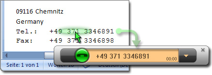 1. Klicken Sie mit der mittleren Maustaste auf eine Rufnummer in einer beliebigen Anwendung.